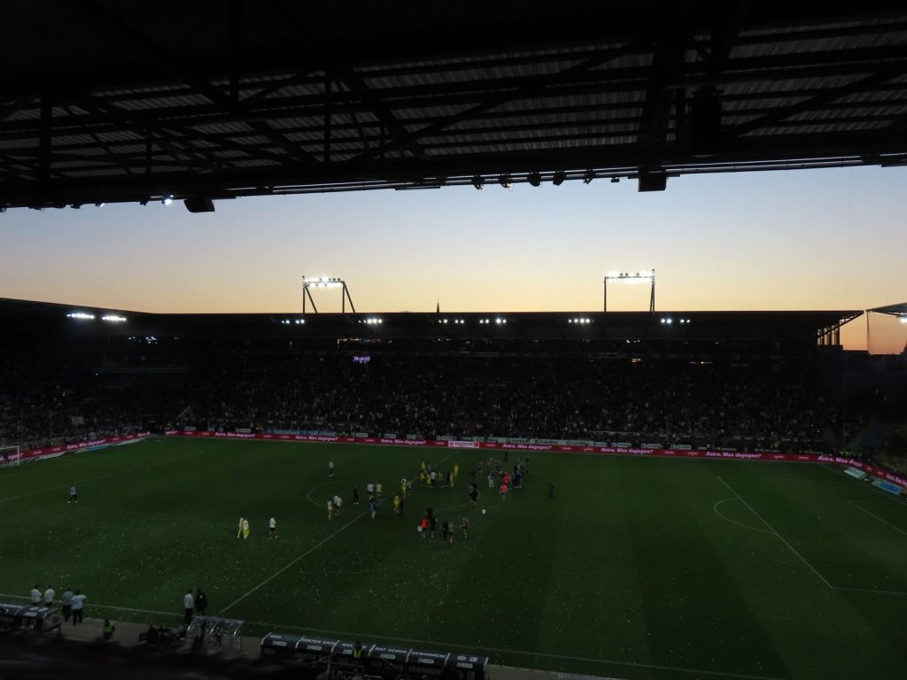 In der Halbzeitpause konnte dann endlich ein großer Teil des Konfettis vom Rasen geblasen werden. Auf dem Rasen selbst gab es erstmal kein neues Personal. Nach vorn machten, neben den offensiven Außenverteidigern, Fujita, Sinani, Hountondji und Pereira Lage enormen Druck. Immer wieder vermochten sie die eher zentriert stehenden Gäste auszuspielen. Das war ein vollkommen anderer Anblick als zur letzten Spielzeit, wo wir den Ball zumiest den spielstärkeren Vereinen überlassen haben. An diesem Tag hatten wir sogar mehr Ballbesitz als die in der Champions League spielenden Gäste. Und wir haben diesen immer wieder sehenswert nutzen können. Das 1-1 durch Hountondji wirkte wie eine Kopie des Führungstreffers, beides Kopfballtreffer der unhaltbaren Art.