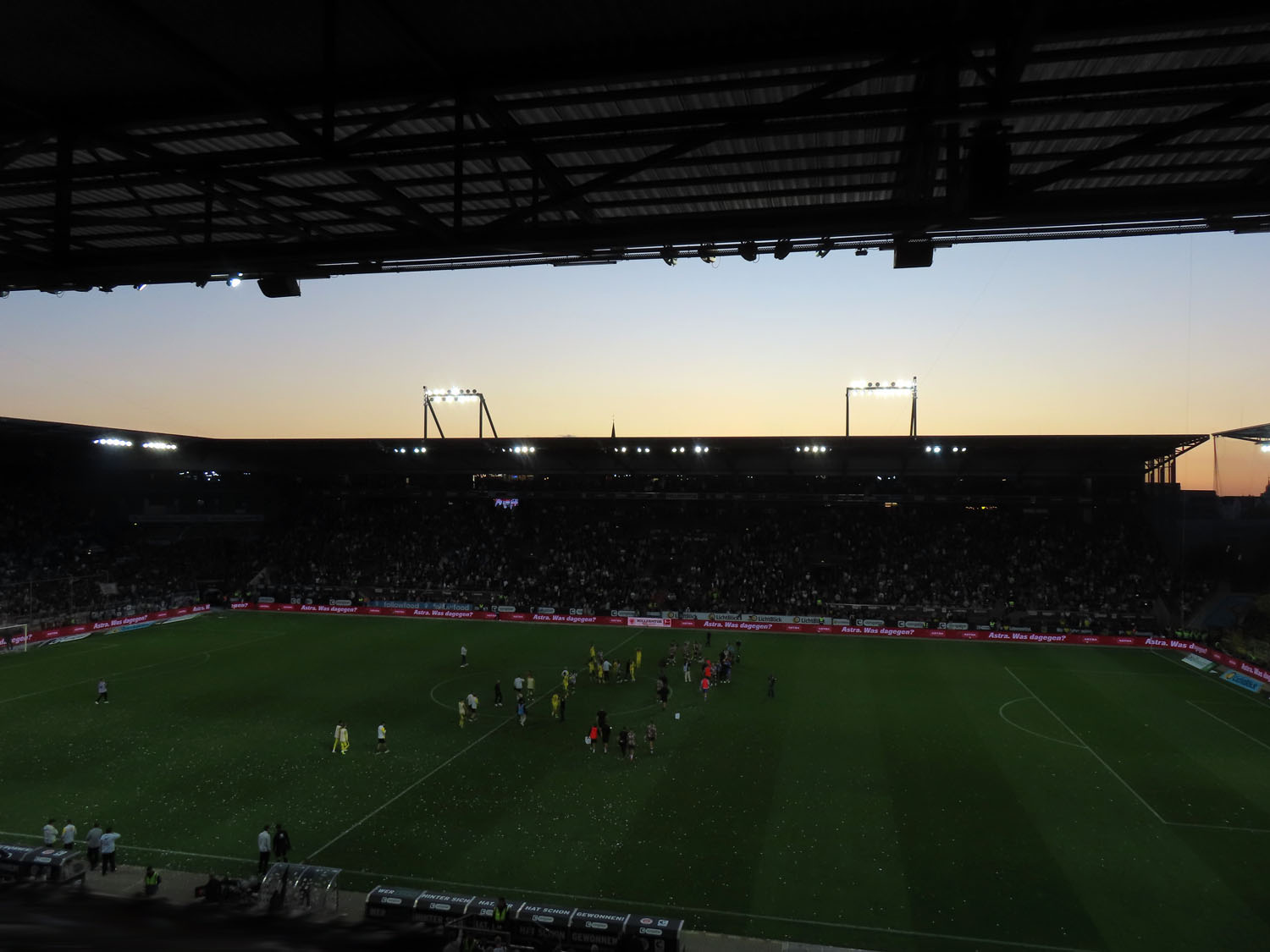 Nebenbei gesagt habe ich keine Ahnung, ob der Hybridrasen schon bei diesem Spiel gelegt war oder erst nach diesem Auftrakt in die Saison eingeflochten werden wird. Kenne mich mit dieser Materie nicht aus und kann die verschiedenen Aussagen dazu auch nicht einordnen.