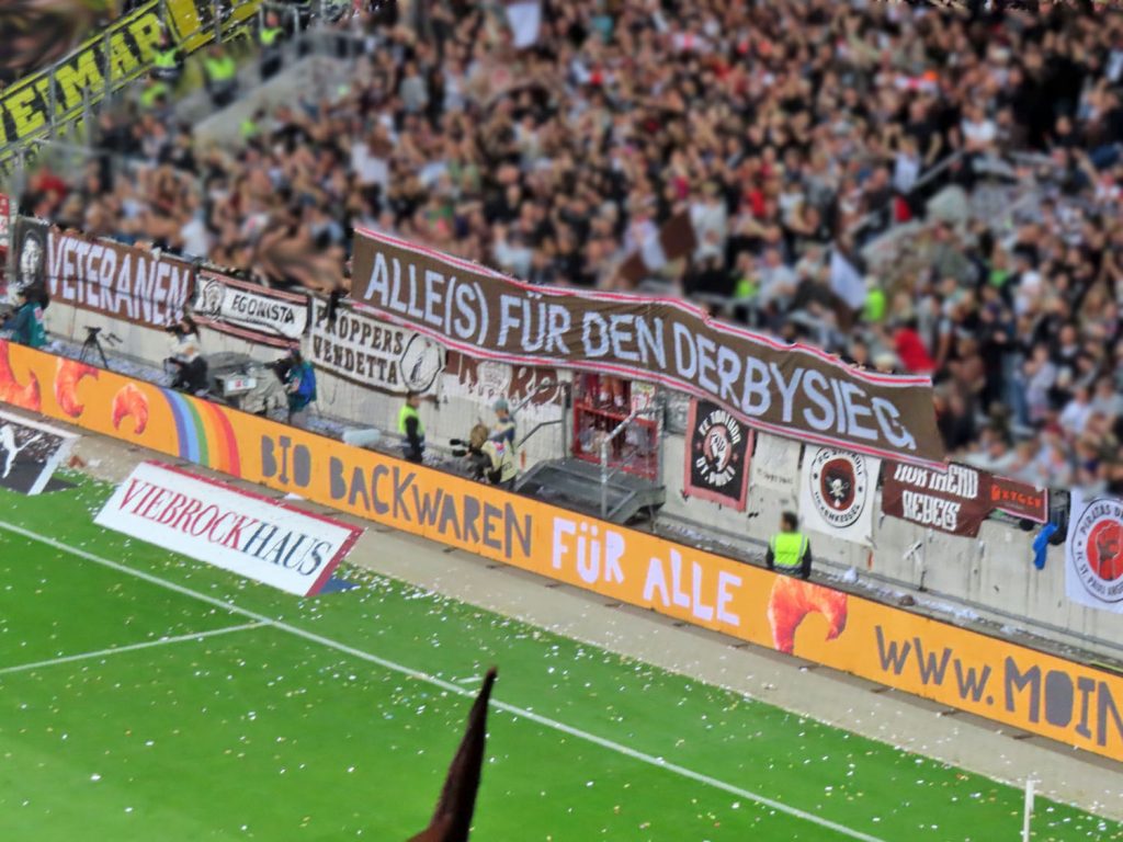 Wobei – inder ersten Liga haben wir den Titel ja noch wie vor. Und diesmal ist es die Vorstadt, die frisch aufgestiegen ist, während wir schon (knapp, also ein Jahr) länger in der Liga sind… Geben wir alles. Auf St. Pauli!